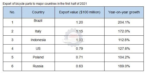 From January to June, the export of parts reached $2.517 billion, up 107.2% year on year, the largest increase in recent years. In June, the export of parts reached $482 million, up 86.6% year-on-year and 3.0% month-on-month. Among the top 10 export destinations, the export to Brazil, Italy, Indonesia, the United States, Poland and Russia more than doubled, with the respective export value of $120 million, $115 million, $103 million, $79 million, $71 million and $63 million, and year-on-year growth of 204.1%, 172.0%, 112.8%, 127.6%, 104.2% and 189.0%; the export to other countries and regions maintained double-digit growth.